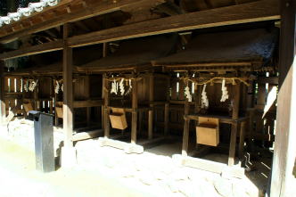 西京区灰方(はいがた)に大歳神社(おおとし-じんじゃ)はある。古くより鎮守の森が広がり、「栢杜(かやのもりしゃ)」、「柏森明神」とも称されていた。灰方、小塩の産土神として崇敬された。 祭神は、向日神社の祭神・御年神の父神・大歳神(おおどしのおおかみ)を祀る。農耕生産の神、方除祈雨の神、当地方の守護神になる。相殿に豊玉姫命(とよたまひめのみこと)、石作神(いしつくりのかみ)を祀る。 大歳神社は、『式内式』乙訓郡十九座大五座小十四座、石作神社は、乙訓郡十九座大五座小十四座のひとつ。 飛地境内として 早尾神社(石作町)、住吉神社(出灰町)がある。 ◆歴史年表 創建、変遷の詳細は不明。 奈良時代、718年、創建ともいう。 平安時代、859年、神階は従五位下に進む。(『新撰姓氏録』) 972年、『延喜式』神名帳に記された乙訓郡大歳神社に比定されている。 江戸時代、1680年、現在の本殿が造営された。 江戸時代、石作神社が灰方村大歳神社内に祀られているとの記述が残る。(『大日本史』巻2)。 近代、1941年、皇紀2600年事業に伴い、長岡天満宮の本殿を移築する。 現代、1974年、石作神は石工団地神社(愛知県岡崎市)に分霊された。 ◆建築 本殿は、長岡天満宮の本殿を移したという。方一間半、流造、檜皮葺。 ◆石作神社・石作氏 相殿に、式内・石作(いしつくり)神社を祀る。石作神は代々石棺などを製作する豪族の祖神とされる。火明命(ほあかりのみこと)の後裔という。また、石作氏の祖は建麻利根命(たてまりねのみこと)ともいう。 弥生時代の第11代・垂仁天皇(前69-70)后・日葉酢媛命(日葉昨姫命、ひばすひめのみこと、?-243)が亡くなった際に、石棺を献上したことから石作大連公(いしづくりおおむらじのきみ)の姓を贈られたという。(『新撰姓氏録』)。 平安時代前期、859年、石作神社は正六位より従五位下に進む。(『三代実録』)。 石作氏の衰微により、後に大歳神社に合祀されたという。旧鎮座地は、三鈷寺近くの早尾神社(西京区大原野石作町灰谷丸尾1)とも、長峰八幡宮(西京区大原野石作町40)ともいう。 石作神社の式内社は全国に6社あり、そのうち尾張地方に4社ある。叙位されたのは、当社のみという。 当社では「大歳神社系」として次のように紹介している。 天照大神━素盞嗚命 大歳神━向日神(向日神社) ┃━━┃ 大市比売 宇賀之御霊神(稲荷大社) ◆摂末社 ◈大神宮社に天照大神(あまてらすおおかみ)を祀る。 ◈稲荷社に稲荷大神(いなりおおかみ)、向日社に向日大神(むこうおおかみ)、西ノ宮社に西ノ宮大神(にしのみやおおかみ)、春日社に春日大神(かすがおおかみ)を祀る。 ◈天満宮社に菅原道真(すがわらのみちざね)を祀る。 ◆灰方 この地の地名「灰方(はいがた)」では、古くより石灰(せっかい/いしばい)を産し、焼いて禁裏へ貢じていたことに因むという。(『山州名跡志』『山城名勝志』) 石灰岩を焼くと、生石灰(酸化カルシウム)に変化し、水と反応して消石灰(水酸化カルシウム)になる。これは、壁材、棺を塗り固める際の素材、石などの接合部にも使われた。粘土と混ぜると漆喰土になった。なお、清涼殿東南隅には「石灰壇(いしばいだん)」(5m×3m)があり、床を漆喰で固めている。 この地は、鎌倉時代中期以前より灰方庄だった。庄内にはほかに、「灰谷(はいたに)」、「出灰(ゆずりは/いずりは)」などの地名があり、これらの「灰」もいずれも石灰に関わる。(『看聞御記』『一休和尚年譜』)。 「石作(いしつくり)」もまた、石灰に関係するという。垂仁天皇后の石棺を石灰を用いて作ったことに因むという。 ◆樹木 クロガネモチがある。 ◆断層 京都盆地中部西縁に、灰方断層・光明寺断層・西山断層・金ヶ原断層がある。これらは、北西延長部で1つになり、老ノ坂断層(亀岡断層)になる。さらに亀岡盆地の東縁、北西の京都・西山断層帯北西半部(亀岡断層帯)に繋がっている。断層の長さ20km。 灰方断層・光明寺断層は、段丘面に低断層崖があり、東底下の上下位変位が見られる。 ◆年間行事 例祭(10月21日)、氏子祭(江戸時代中期より続く、金剛流家元による舞が奉納される。)(10月第3日曜日)。 *年間行事は中止・日時・内容変更の場合があります。*原則として年号は西暦を、近代以前の月日は旧暦を使用しています。 *参考文献・資料 『京の古代社寺 京都の式内社と古代寺院』、『京都・山城寺院神社大事典』、『京都府の歴史散歩 上』、『京都の地名検証』、『京都市の地名』、『昭和京都名所図会 4 洛西』、『京都の寺社505を歩く 下』、『京都 神社と寺院の森』、『京都の歴史災害』 ![]() ![]() ![]() ![]() ![]() ![]() ![]() ![]() |