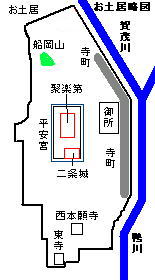 このサイトで使用している「洛中」「洛外」などの範囲については、あくまでも便宜的なものです。安土・桃山時代、豊臣秀吉の築造した「お土居」内が本来の「洛中(洛央)」であり、それ以外が「洛外」になります。それ以来、使用されるようになりました。ただ、実際のお土居は複雑な形をしており、現在、お土居遺構自体もほとんど残されていません。